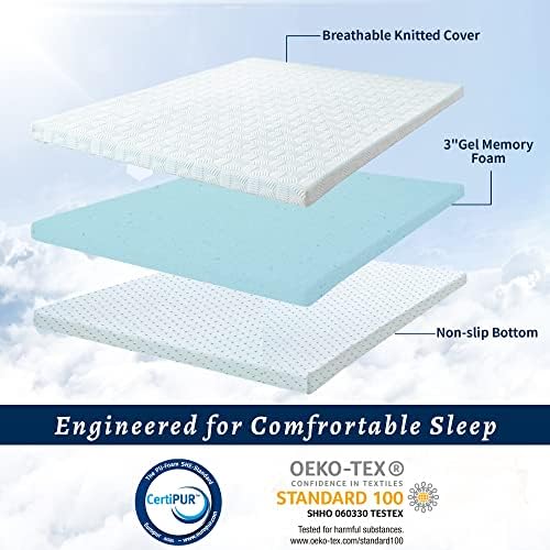 【Pressure-Relieving Comfort】The 3 inch gel memory foam mattress topper fits the body curve and perfectly fits the body contour. Provide you with support anytime, anywhere, without any rebound pressure. Keep the spine in a neutral position, relax the muscles, and reduce morning soreness. Reversible use provides flexibility for your bedroom preference, no matter what sleeping position you choose.