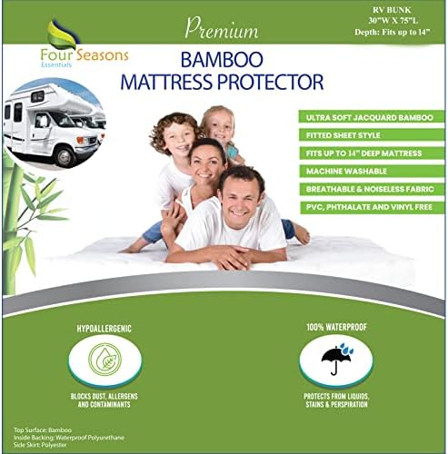 Rv Bunk Size Fitted Mattress Protector 30w”x75l” – Fits Up to 14″ Deep